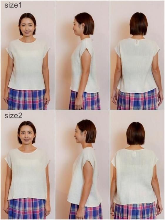ちぢみガーゼ素材で仕立てたフレンチスリーブのシャツです。