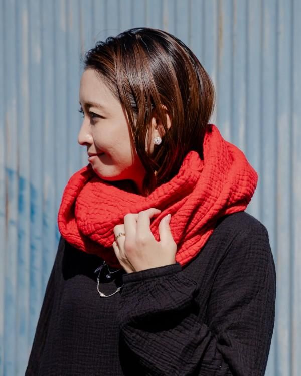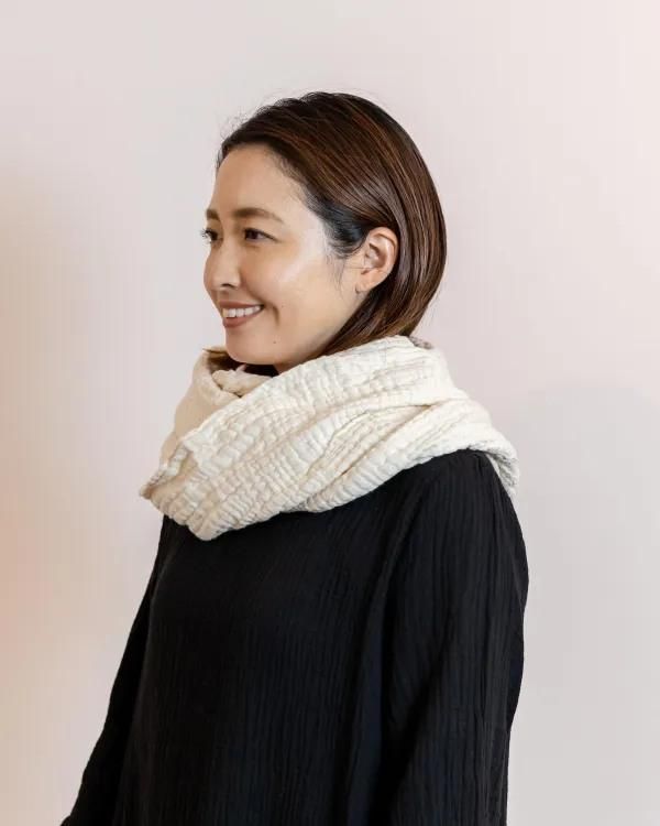 やわらかな肌触りの「ちぢみガーゼ」をスヌードにしました。