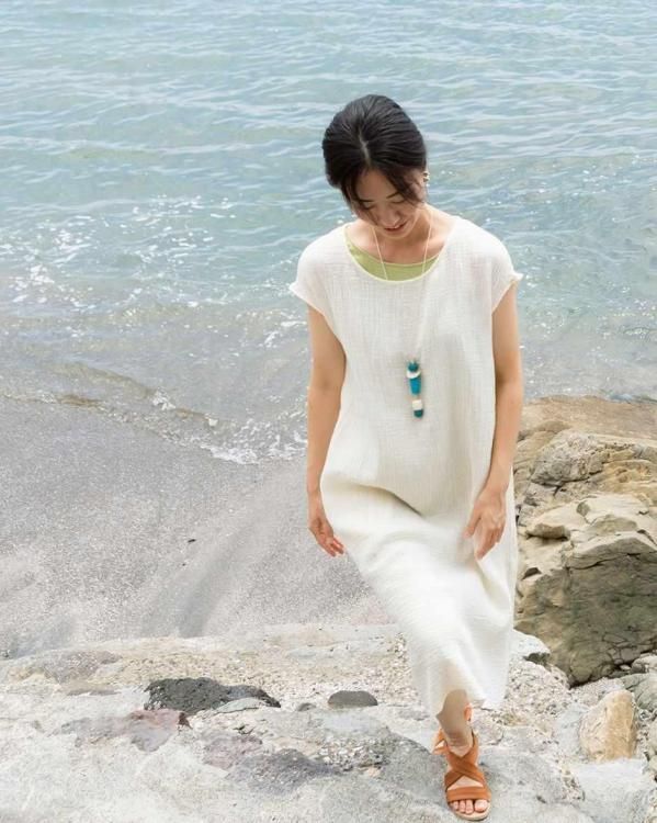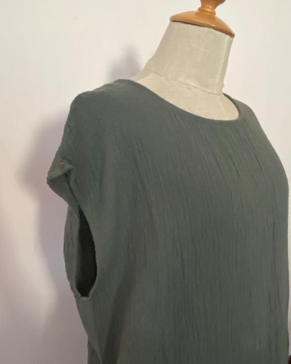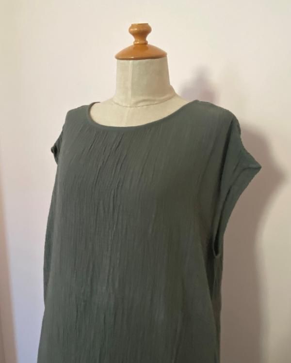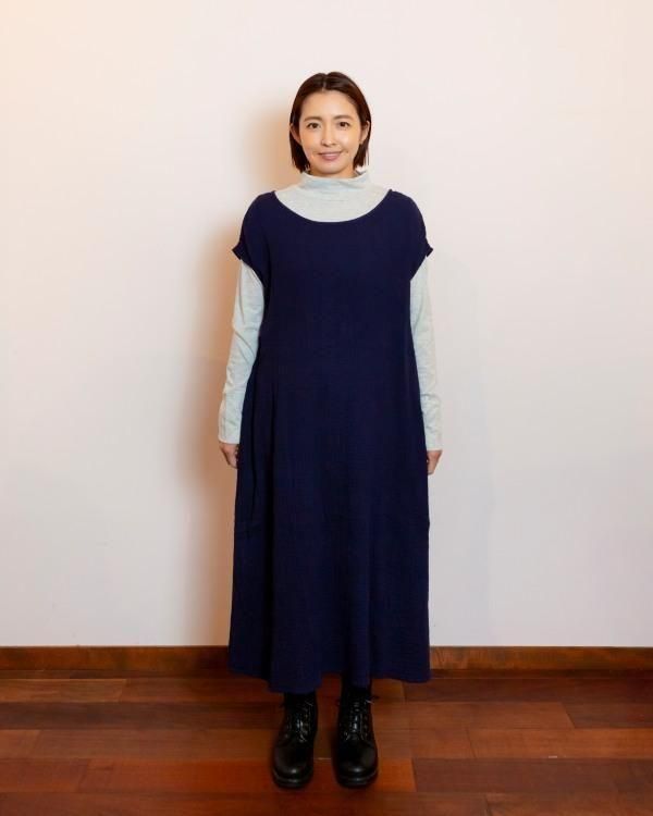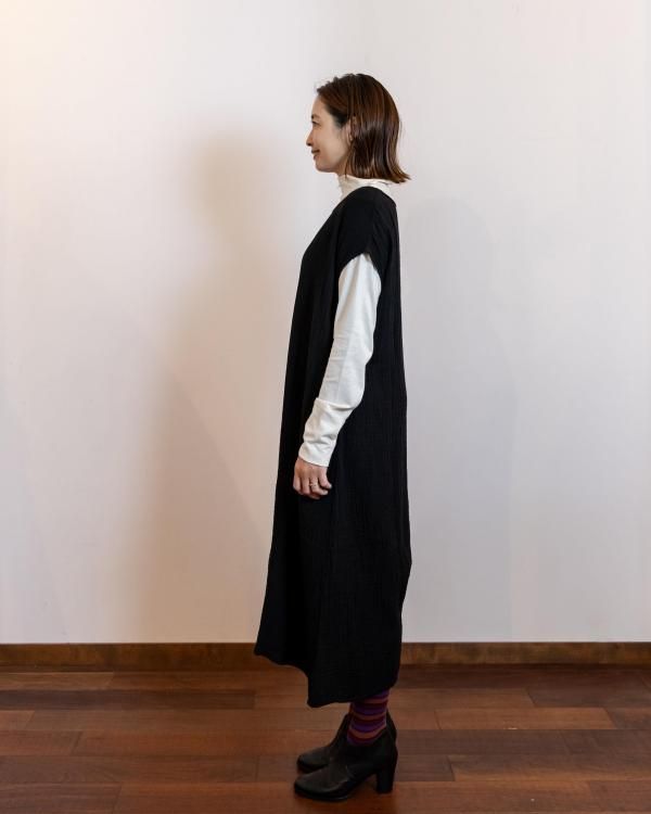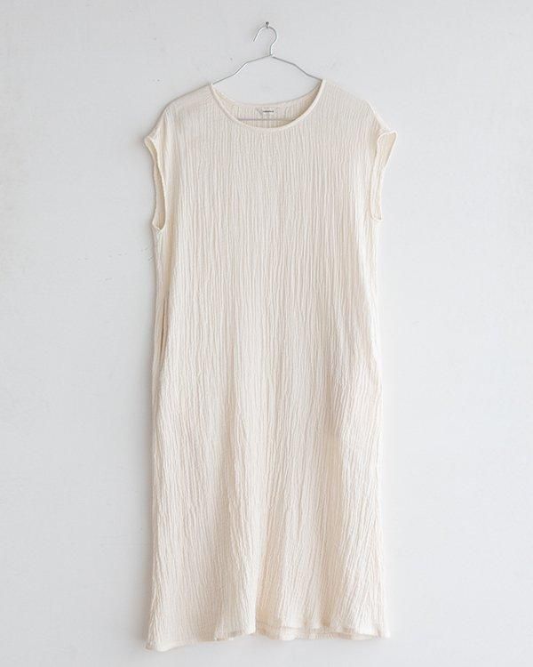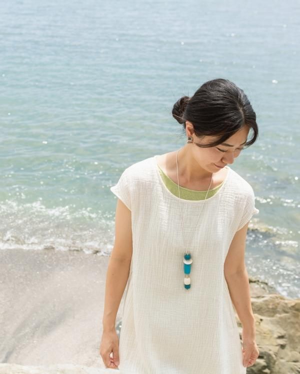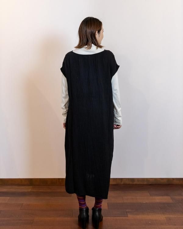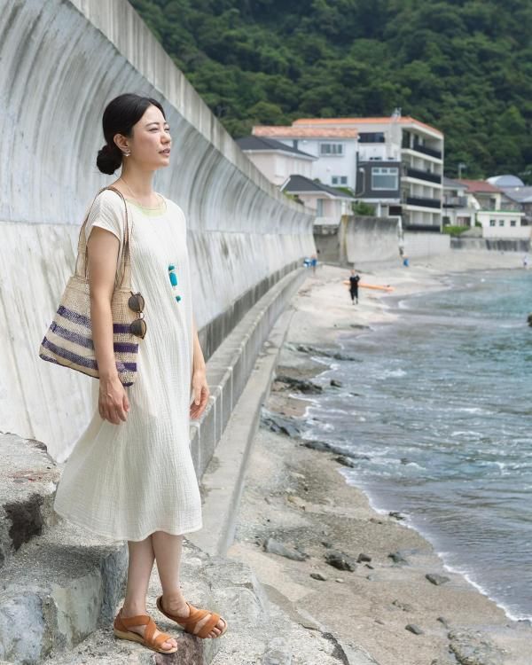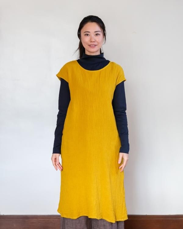 暑い時期もさらりと着心地の良いちぢみガーゼ。すとんと一枚で着るのはもちろん、パンツやレギンスと重ねるのもおすすめです。