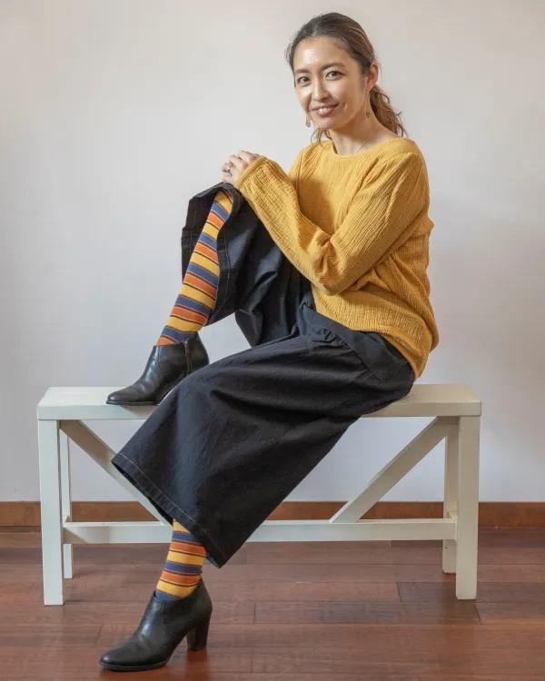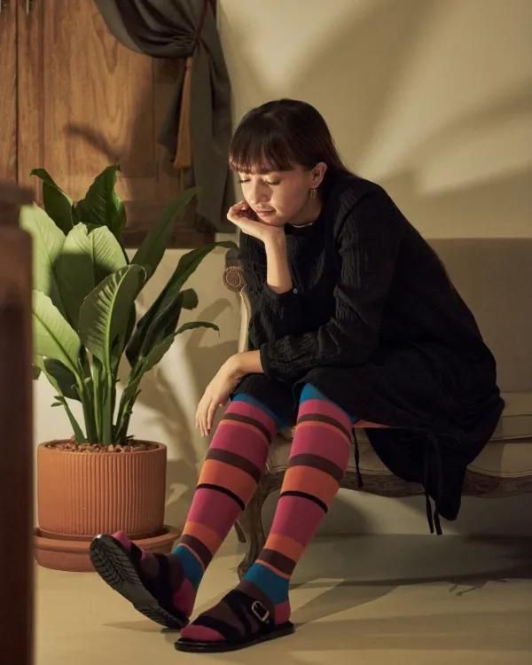 バーンロムサイがコラボした、カラフルな色合いが目を引くタイツ。