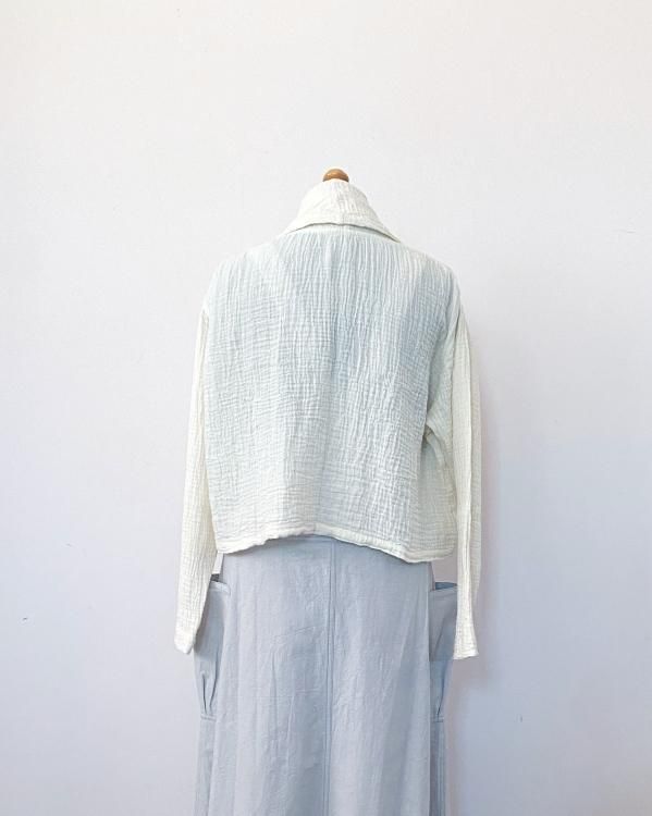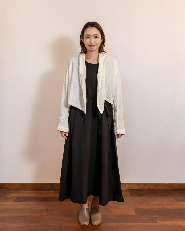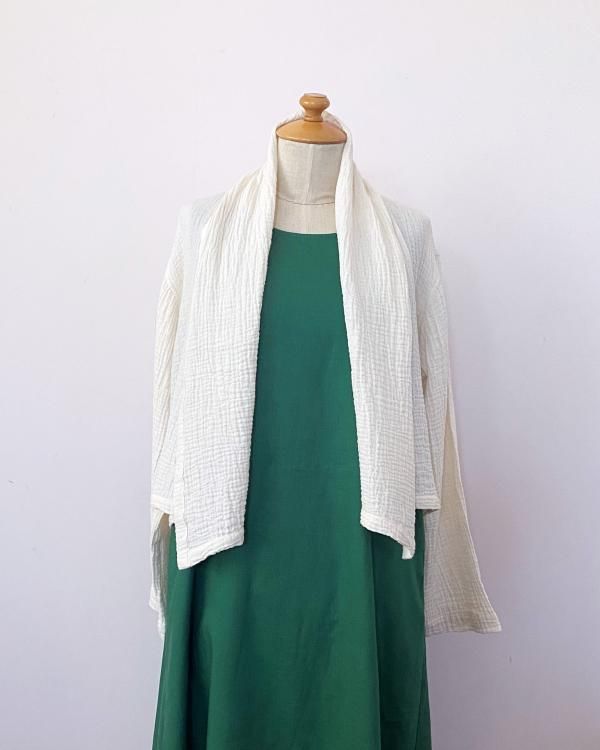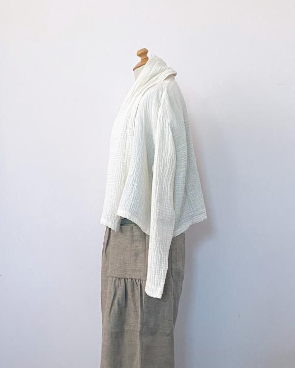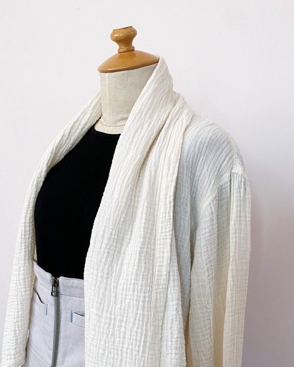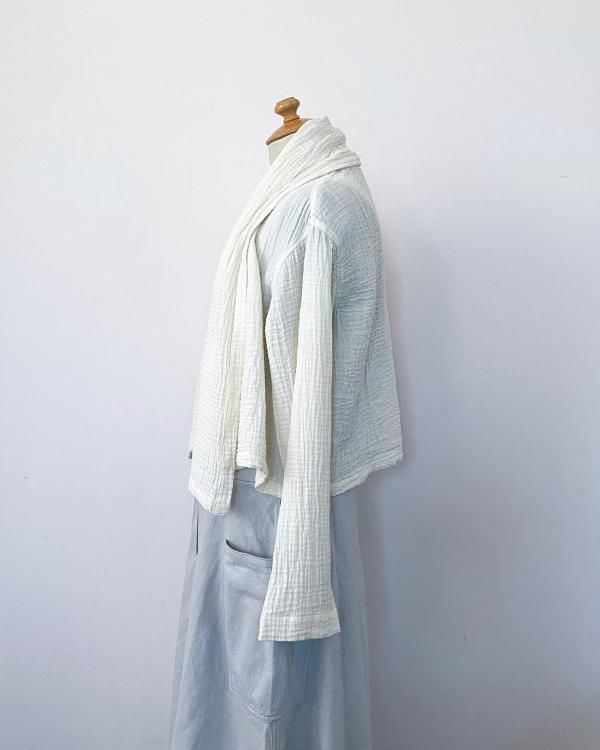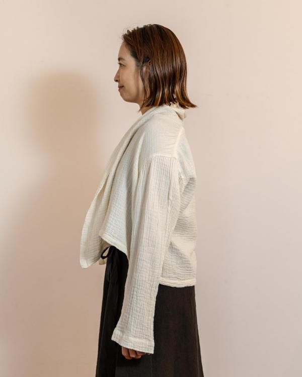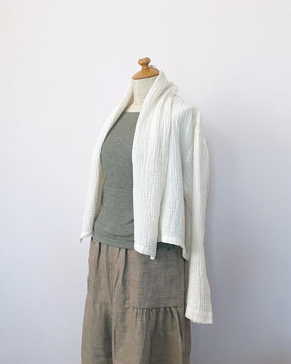 ちぢみガーゼ ショールカラーカーディガン(ショート丈)