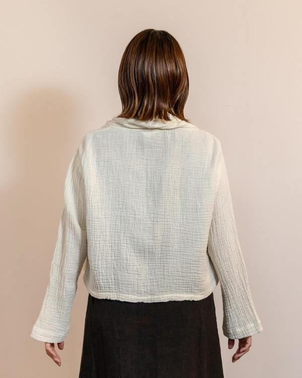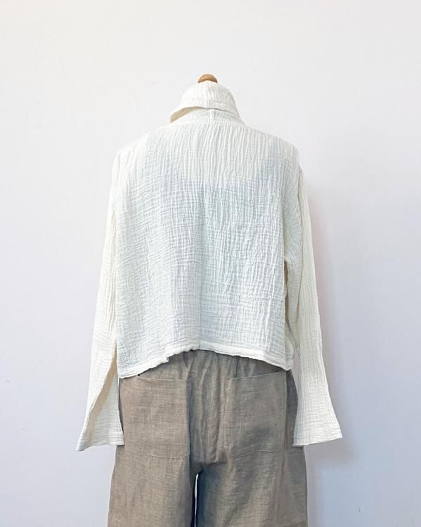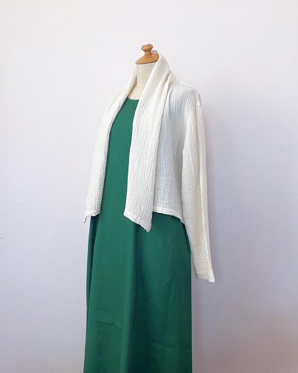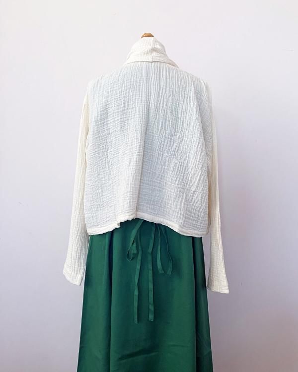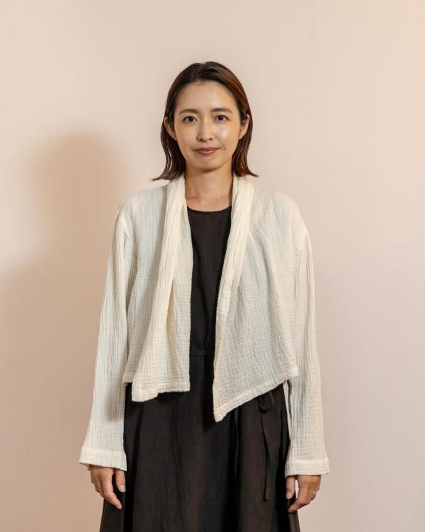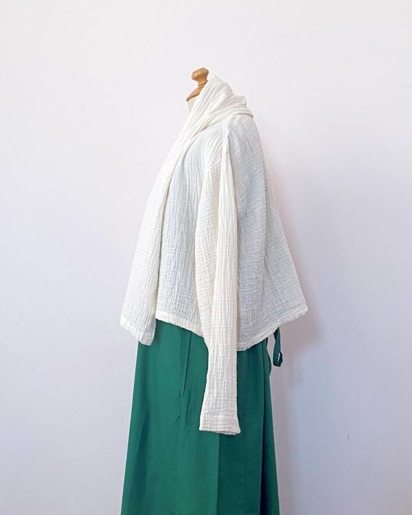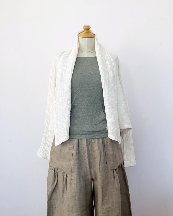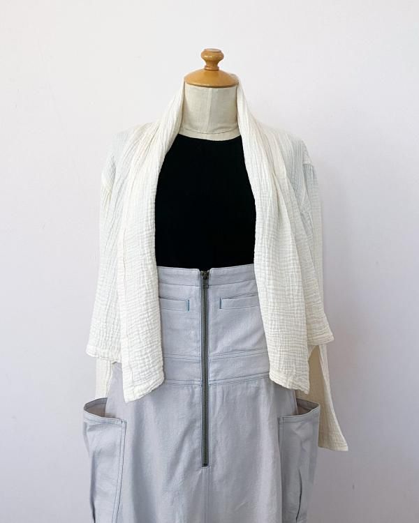 ちぢみガーゼ ショールカラーカーディガン(ショート丈)