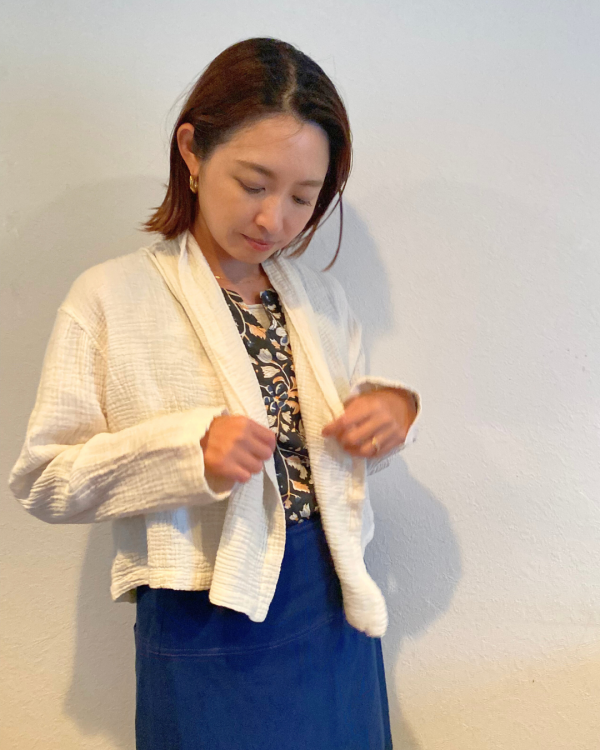 やわらかなちぢみガーゼ素材のカーディガンです。
